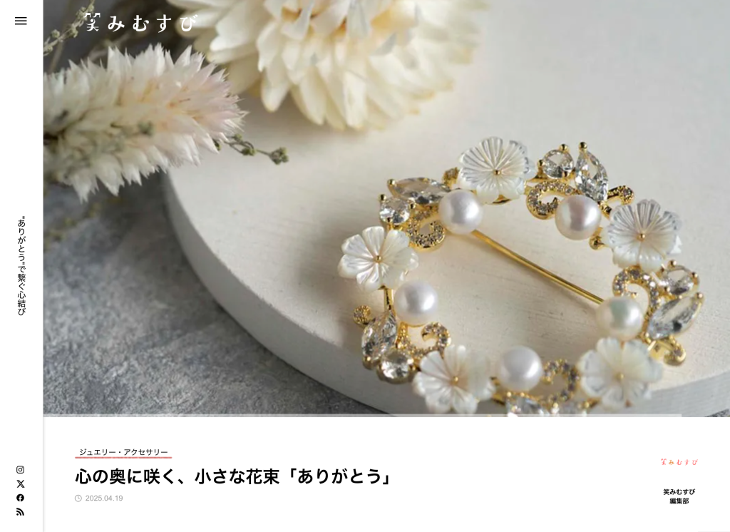 「笑みむすび」は、“ありがとうで繋ぐ心結び”をコンセプトに、贈り物・サービス・アイデアを提案するライフスタイルメディアです。